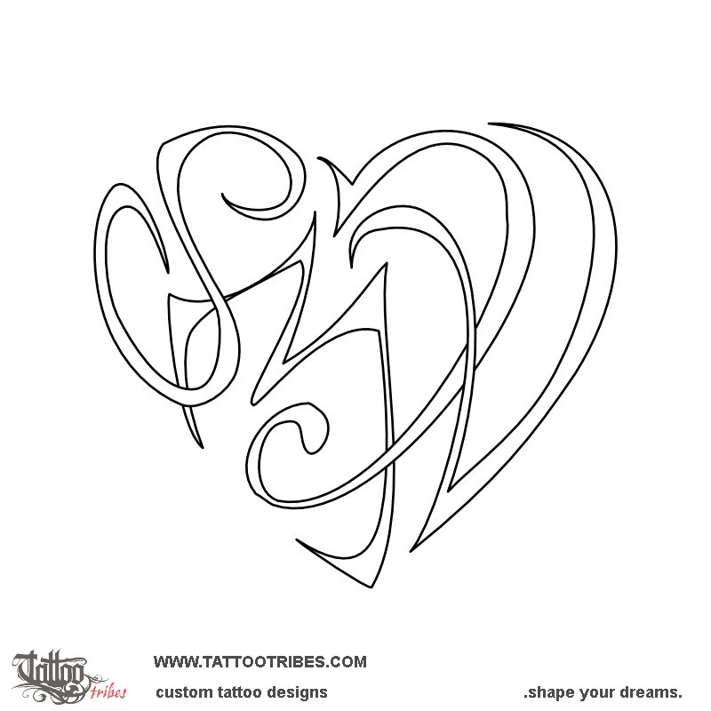Heartigrams are graphic representations of hearts formed by intertwining several letters together thus symbolizing the union of the people represented. In this case it´s the members of Iolanda´s family, who had requested the tattoo of a heart formed by the union of the letters S+M+I+V.