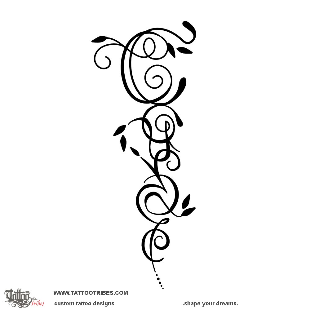 Polynesian tattoos explainedThis intricate and feminine tattoo was prepared for Marnie and it renders the word "Courage" using vines, swirls, and myrtle leaves, which represent faithful love.