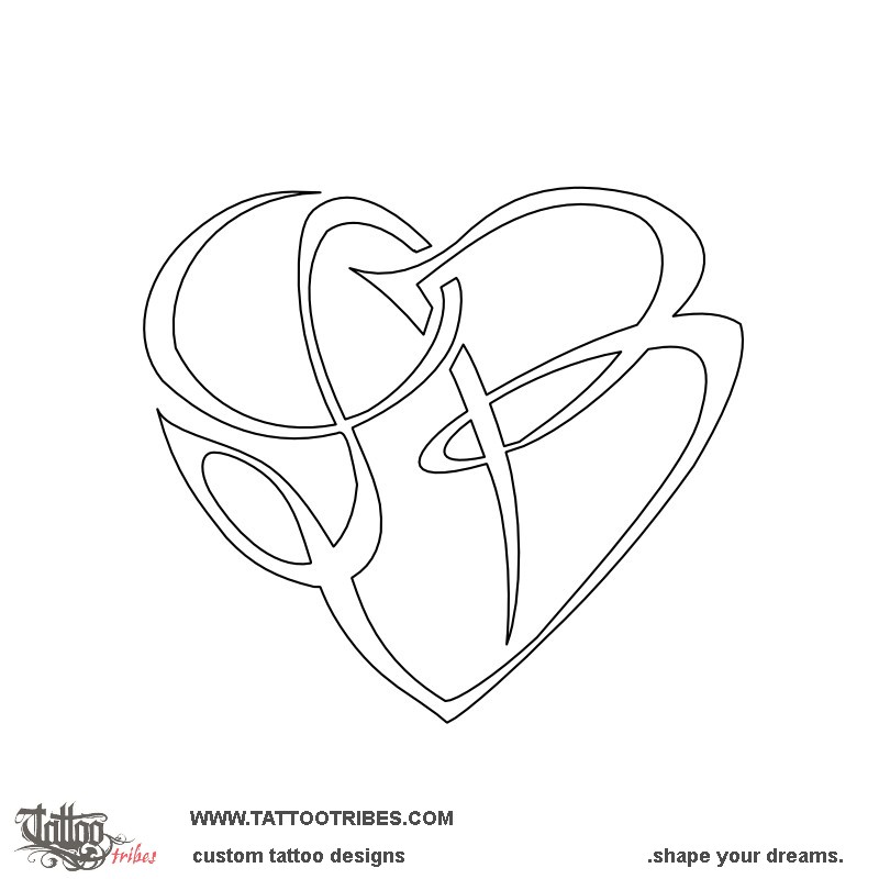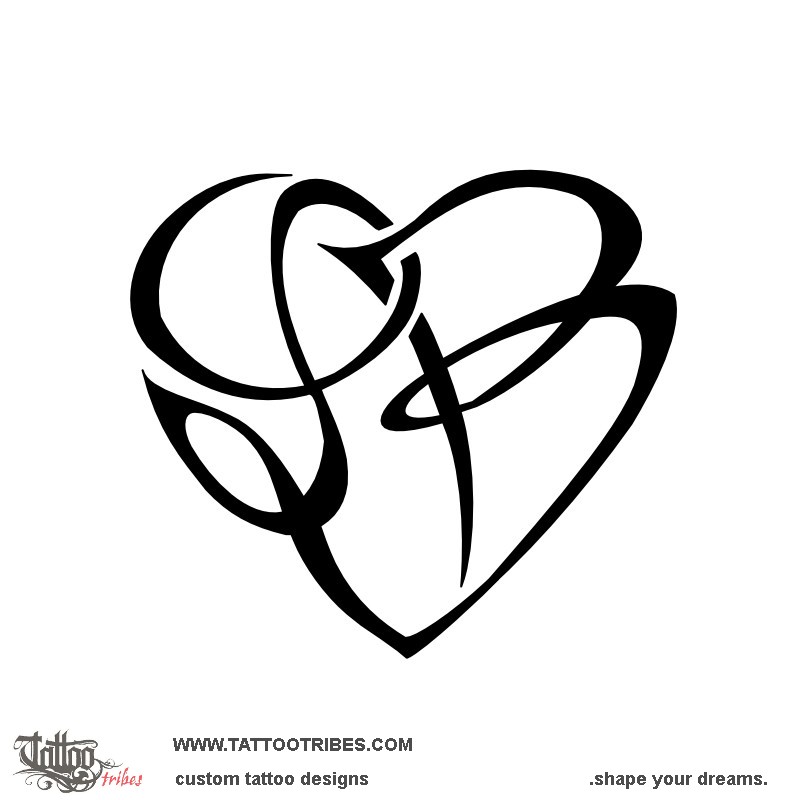 The heartigrams, as we at TattooTribes call these hearts formed by intertwined letters, indicate bond, love and union.