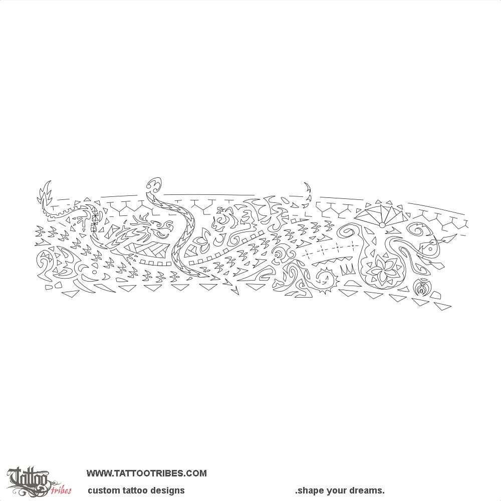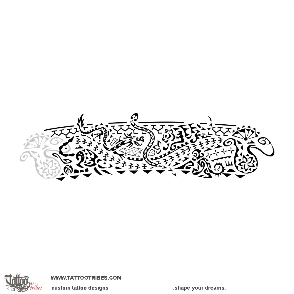 This armband tattoo was prepared for Christopher and it includes some animals from the Chinese zodiac to represent the members of his family: dragon, two snakes, rat, tiger, and monkey.