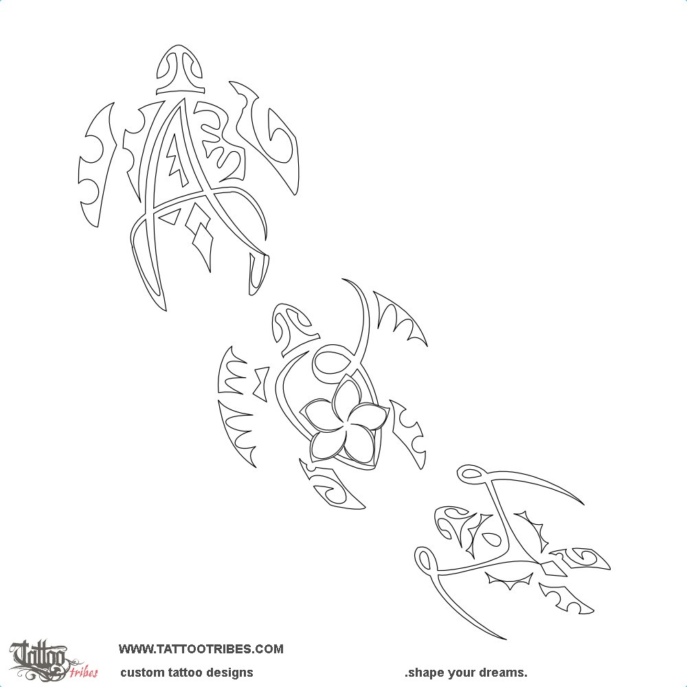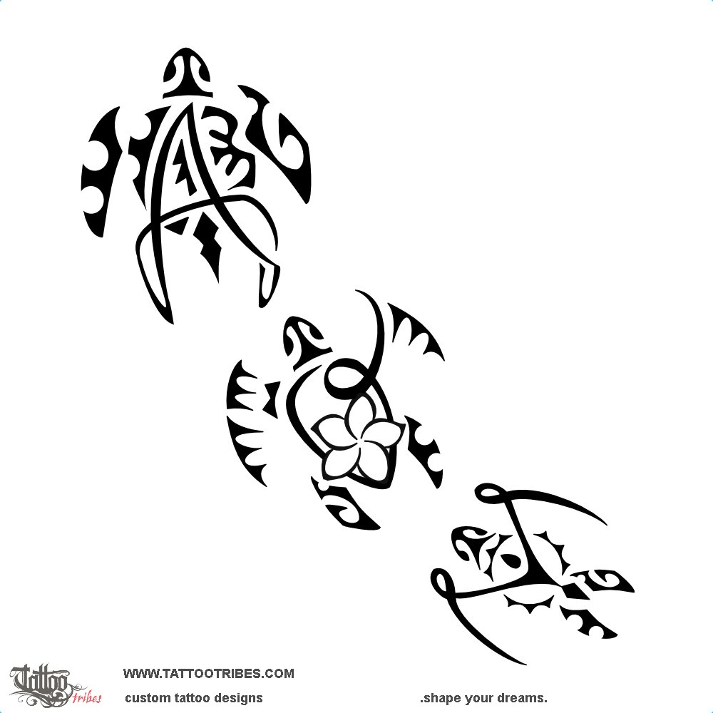 Children 3 turtles Polynesian tattoo