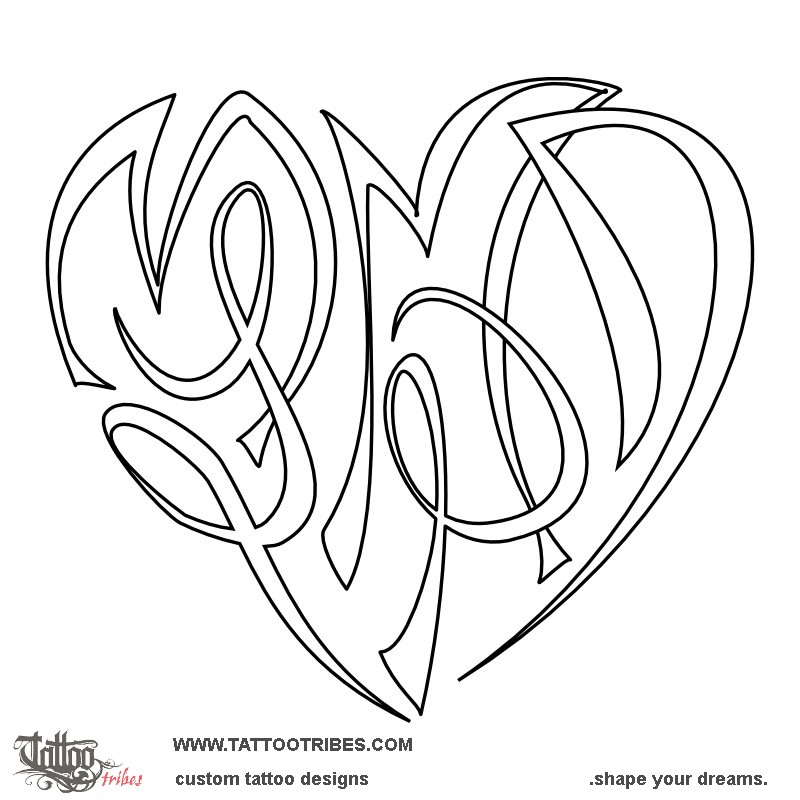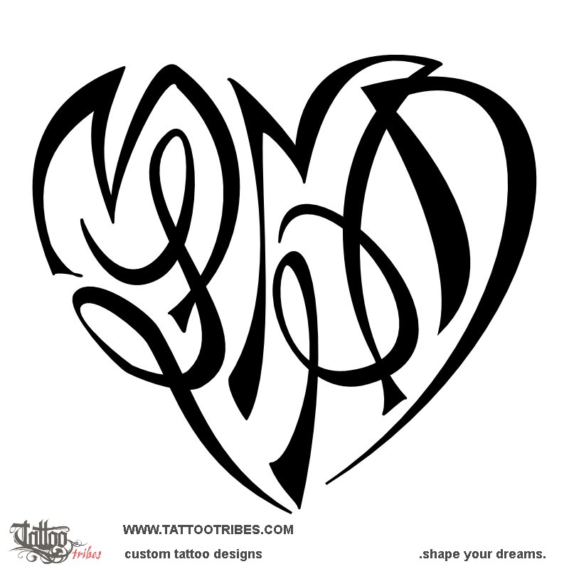 This heart formed by the union of several letters (or heartigram), was prepared for Mara and it contains the initials of the members of her family: M+L+M+P+D.