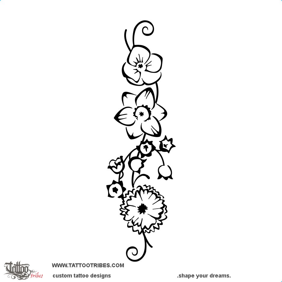 This stylized tattoo was prepared for Susan´s wrist and it includes the birth flowers of her family members to represent their union.