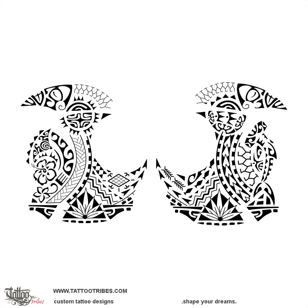 This Polynesian tattoos were prepared to extend this manta tattoo designed for Eduardo and they represent him and his wife, each one with elements symbolizing their different approach to life, and balancing each other.