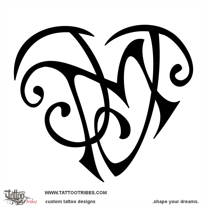 This heartigram tattoo shaped by the union of the letters M+J+M represents the bond of love shared by the family members of Jennifer, for whom this tattoo was prepared.